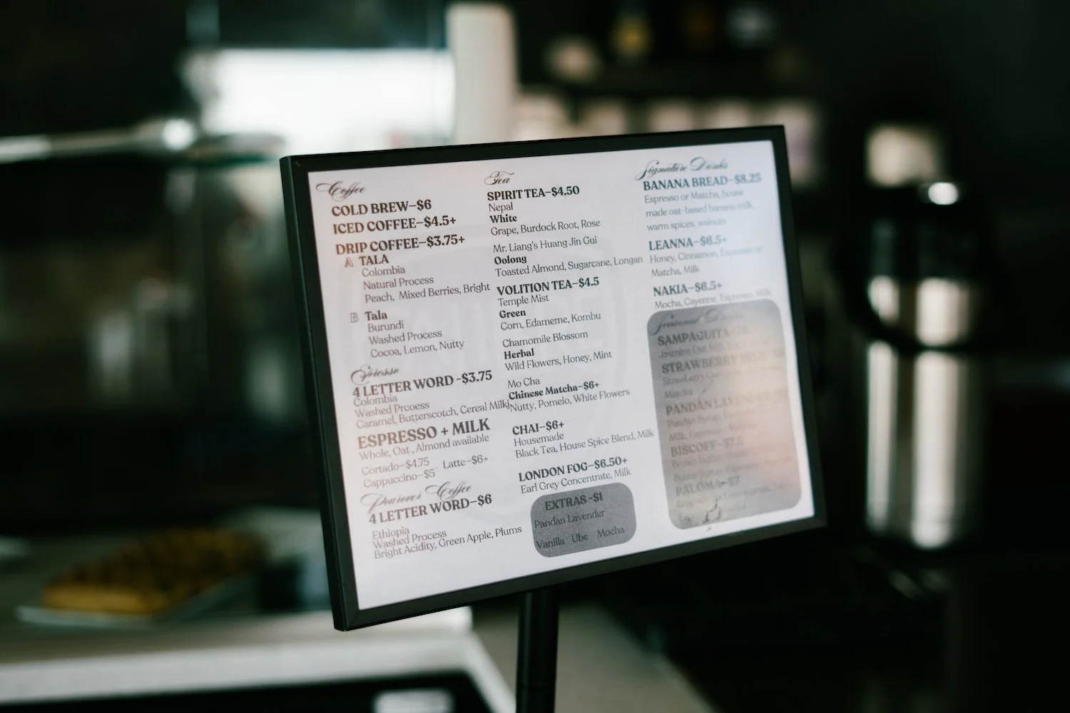 Something Josh was passionate about was the need for good coffee in the suburbs. Calibré does not disappoint when it comes to providing quality coffee and original ideas. The cafe features a unique rotating seasonal menu with international flavors and homemade recipes. This is one of the things that makes Calibré so fun and surprising to check out. I am no stranger to trying the fun specialty drinks at a new cafe, but Calibré had enough intriguing latte and tea-based drinks that I decided I would need to visit again before I even placed my first order. And that was just the milk-based drink menu.