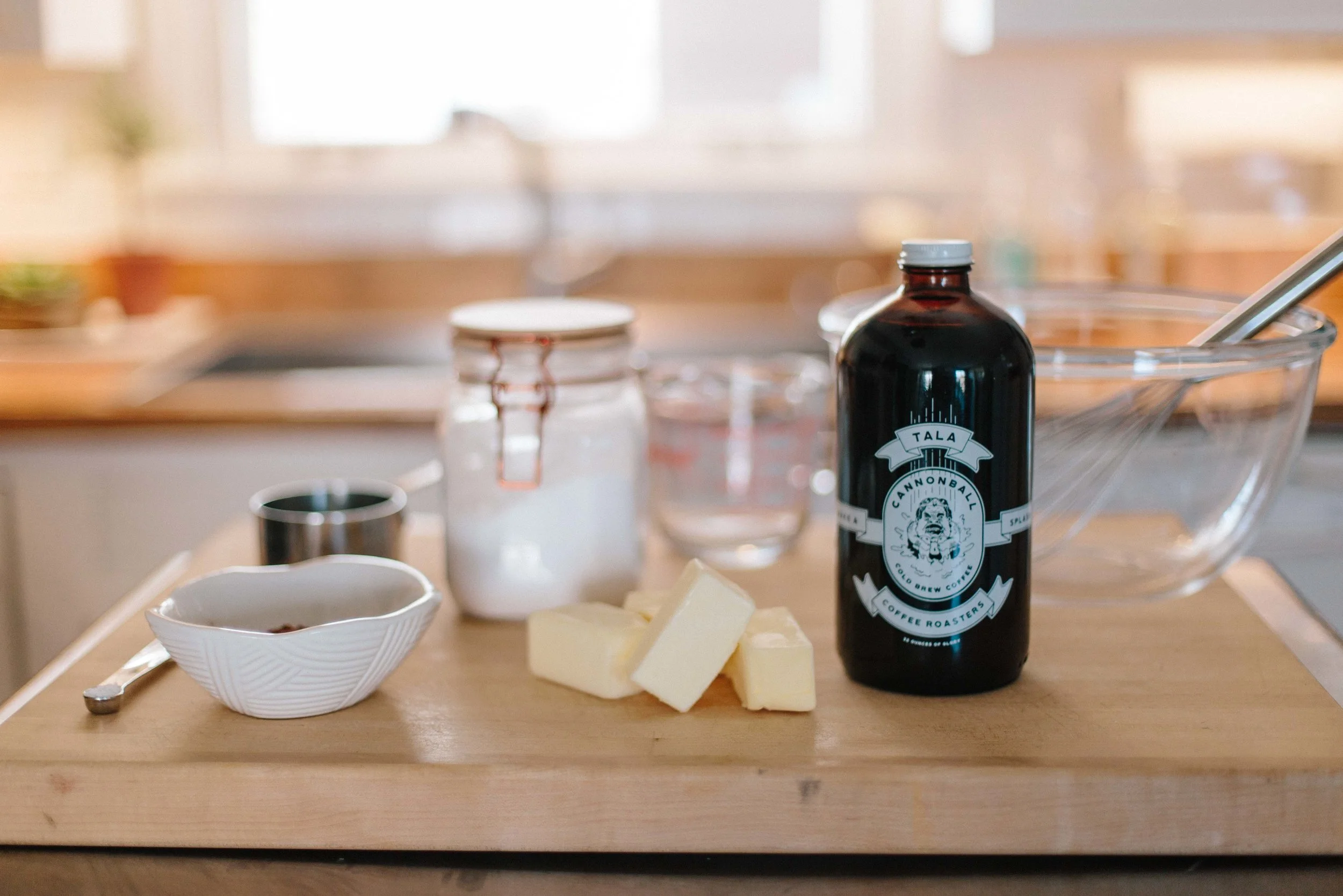 Add softened butter, cocoa powder, salt, vanilla & cold brew.